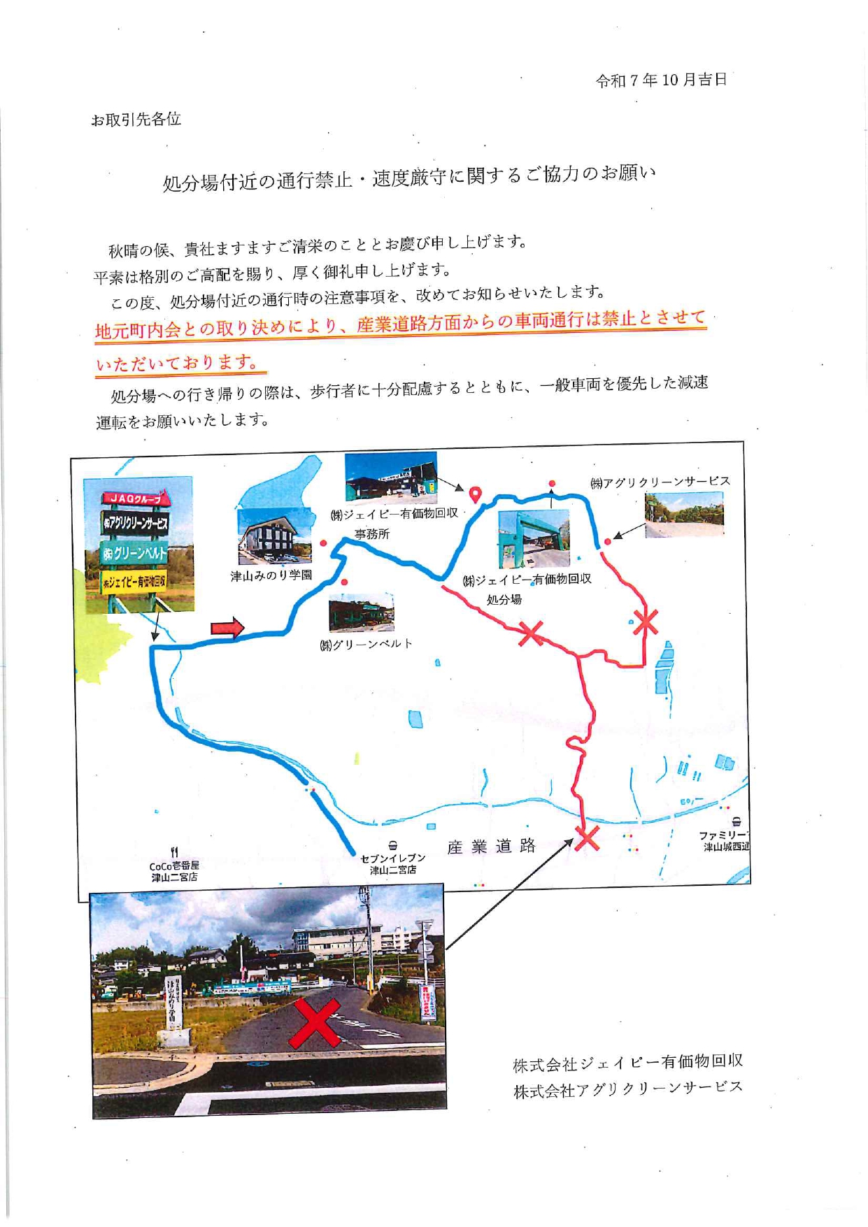 2025/10/09 処分場付近の通行禁止・速度厳守に関するご協力のお願い